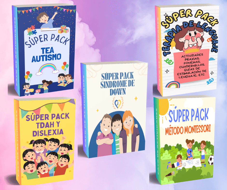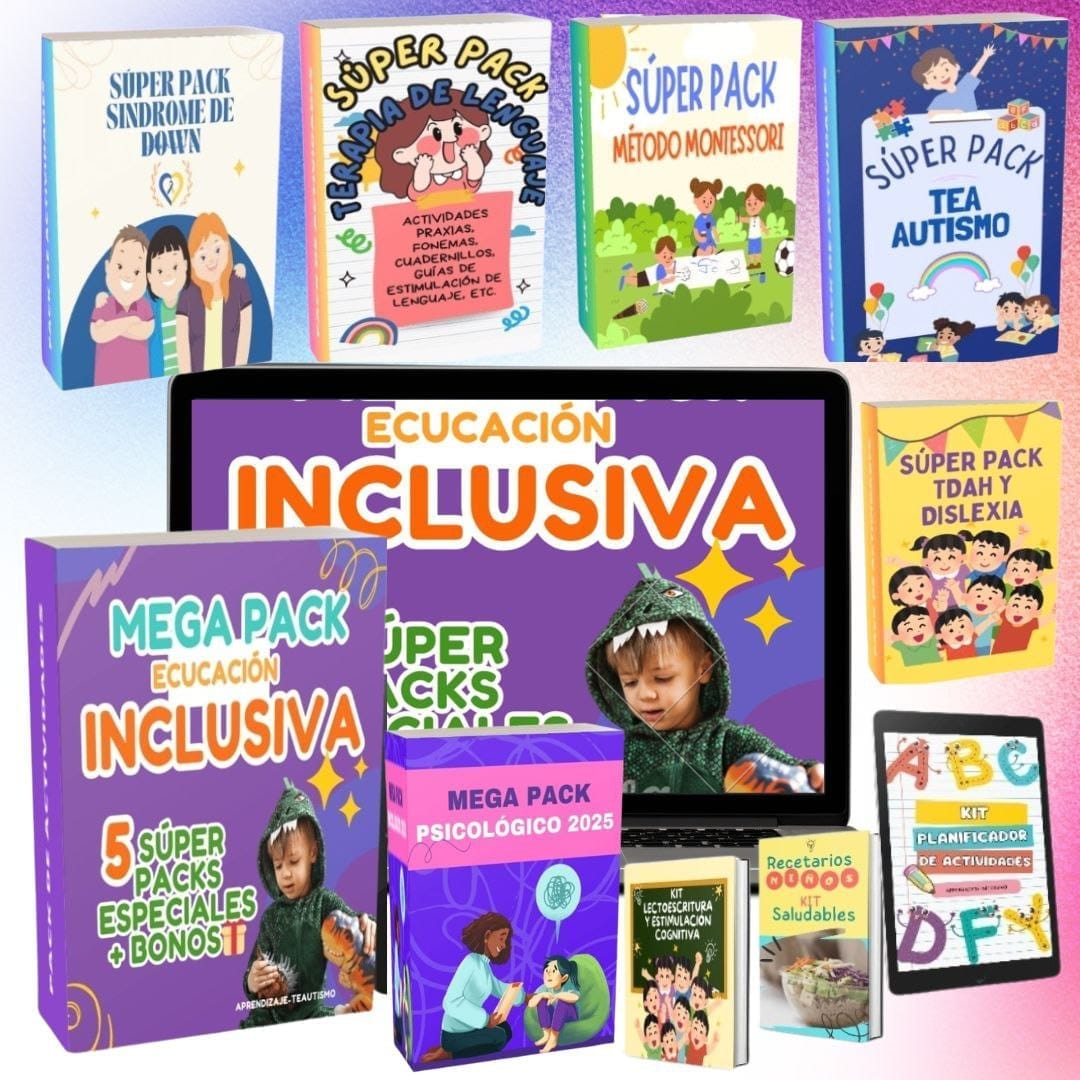 SÚPER PACK TEA- AUTISMO, TERAPIA DE LENGUAJE, SÍNDROME DE DOWN, MÉTODO MONTESSORI, TDAH Y DISLEXIA + 3 BONOS ESPECIALES+ MEGA PACK PSICOLÓGICO A SOLO: